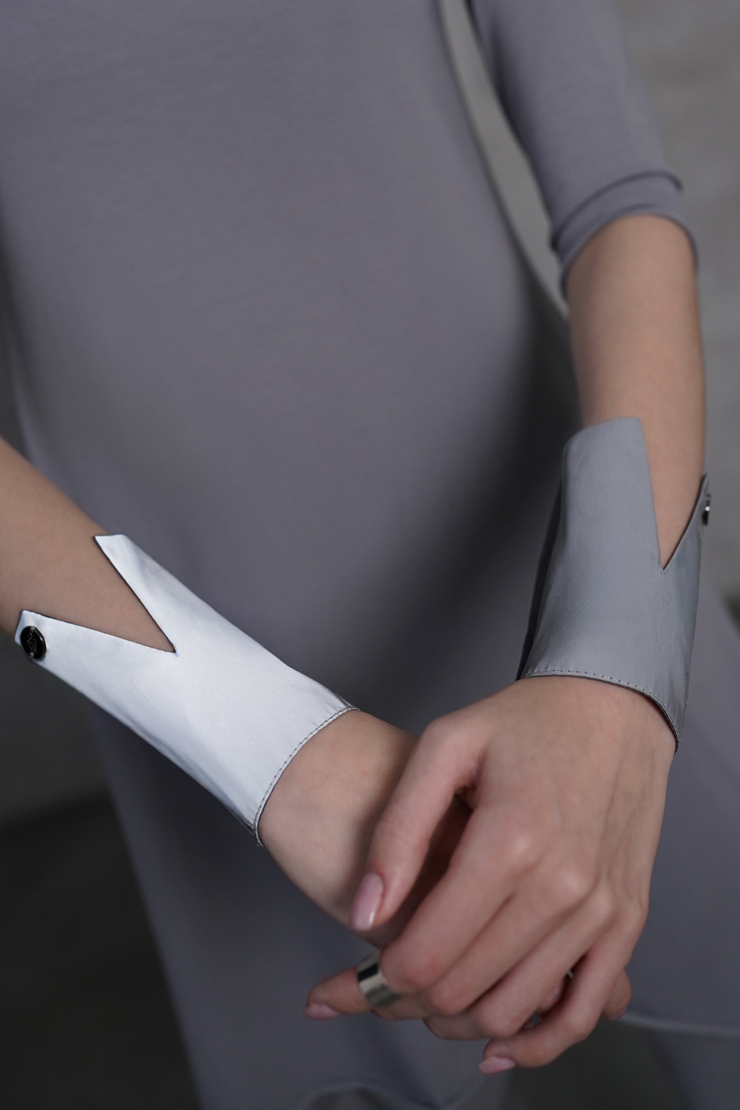 Эффектные короткие манжеты выполнены из светоотражающего материала самого высокого качества. Подклад - 100% хлопок, для удобства и комфорта использования.