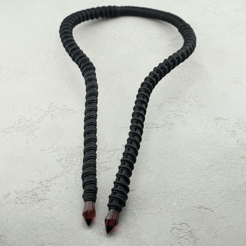 Идеально вписывается в повседневные образы, делая их более авангардными. Длина - 66 см в согнутом виде Вставки: красный искусственный хрусталь; Вощёные нити; Надевается без замка, принимает форму вашего тела. Количество: