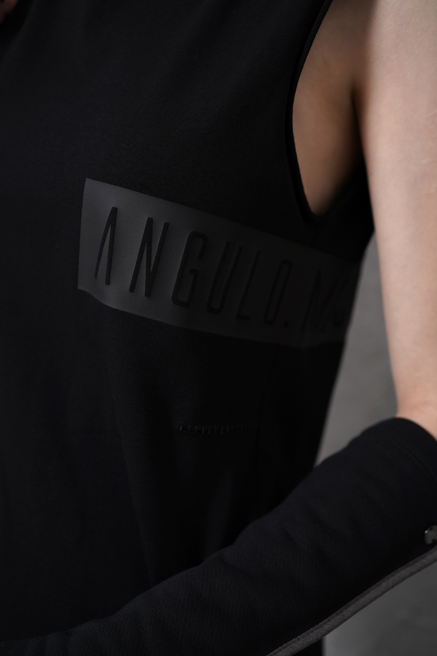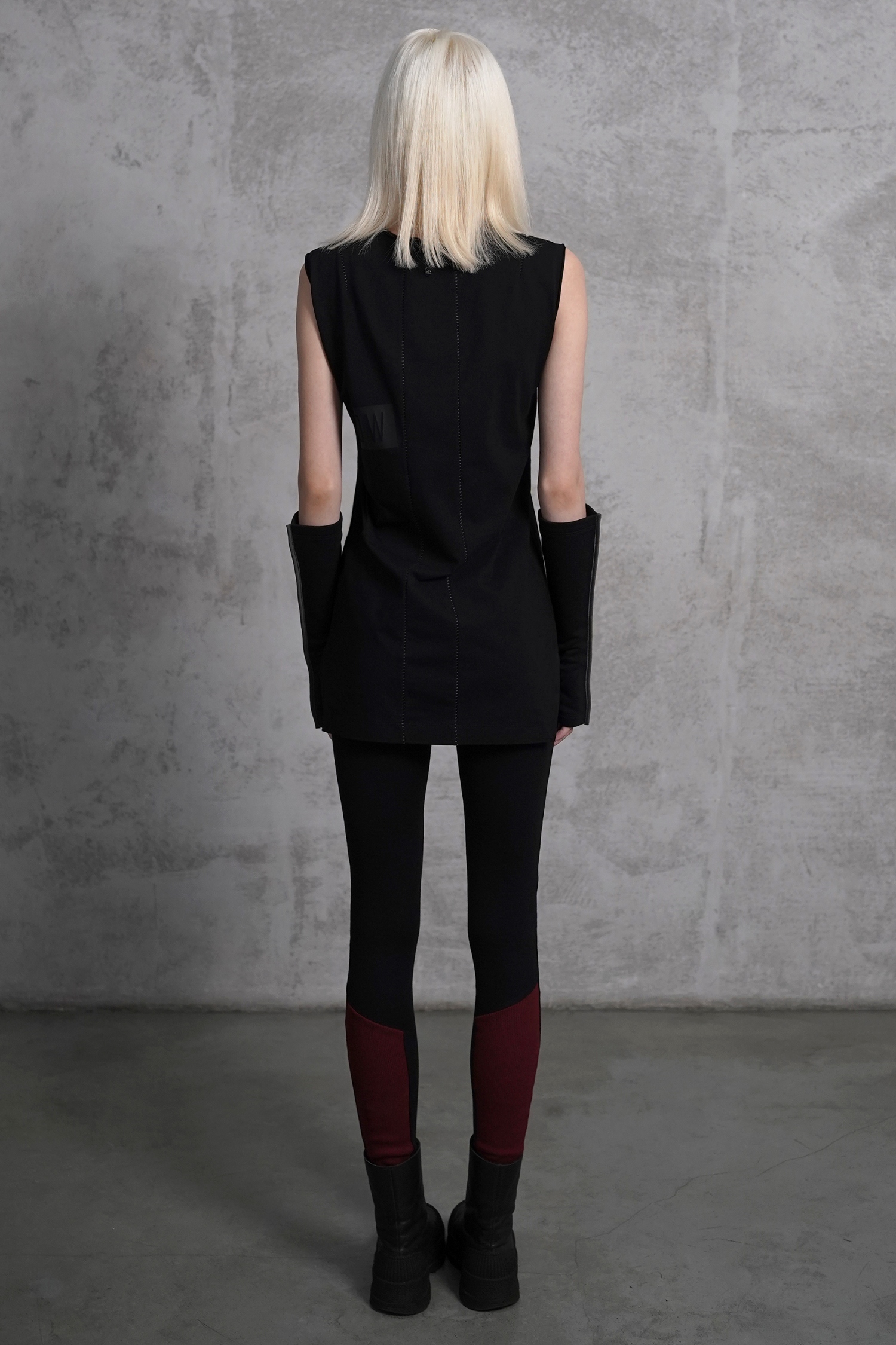 Безрукавка прямого кроя, удлиненная спинка и полочка, декоративные швы цвета хаки.